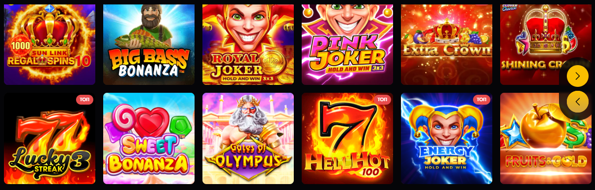Parik24 пропонуєм понад 7 000 онлайн слотів, зручно розподілених по спеціальним колекціям — Bonus Buy, Megaways, Hold and Win, Ретро, Фрукти, Рибалка, Турніри тощо. Всі найкращі автомати ми зібрали в особливій колекції — Рекомендовані, тож почати можна з таких слотів: