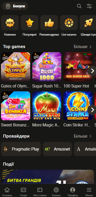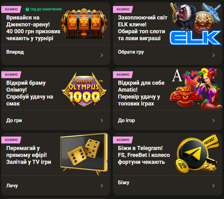 Легальність та безпека Краща колекція слотів Добірні Live ігри Українські дилери живого казино Широкі ліміти депозиту та виводу Зручна оплата з картки чи готівкою Великий вибір промо Власна програма лояльності Бездепозитні бонус Прозорі бонусні умови Зручний додаток Підтримка 24/7 |